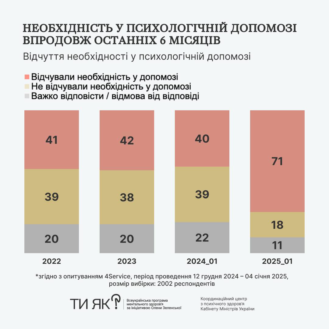 - Суттєво збільшився запит на психологічну підтримку — з 41% до 71%!