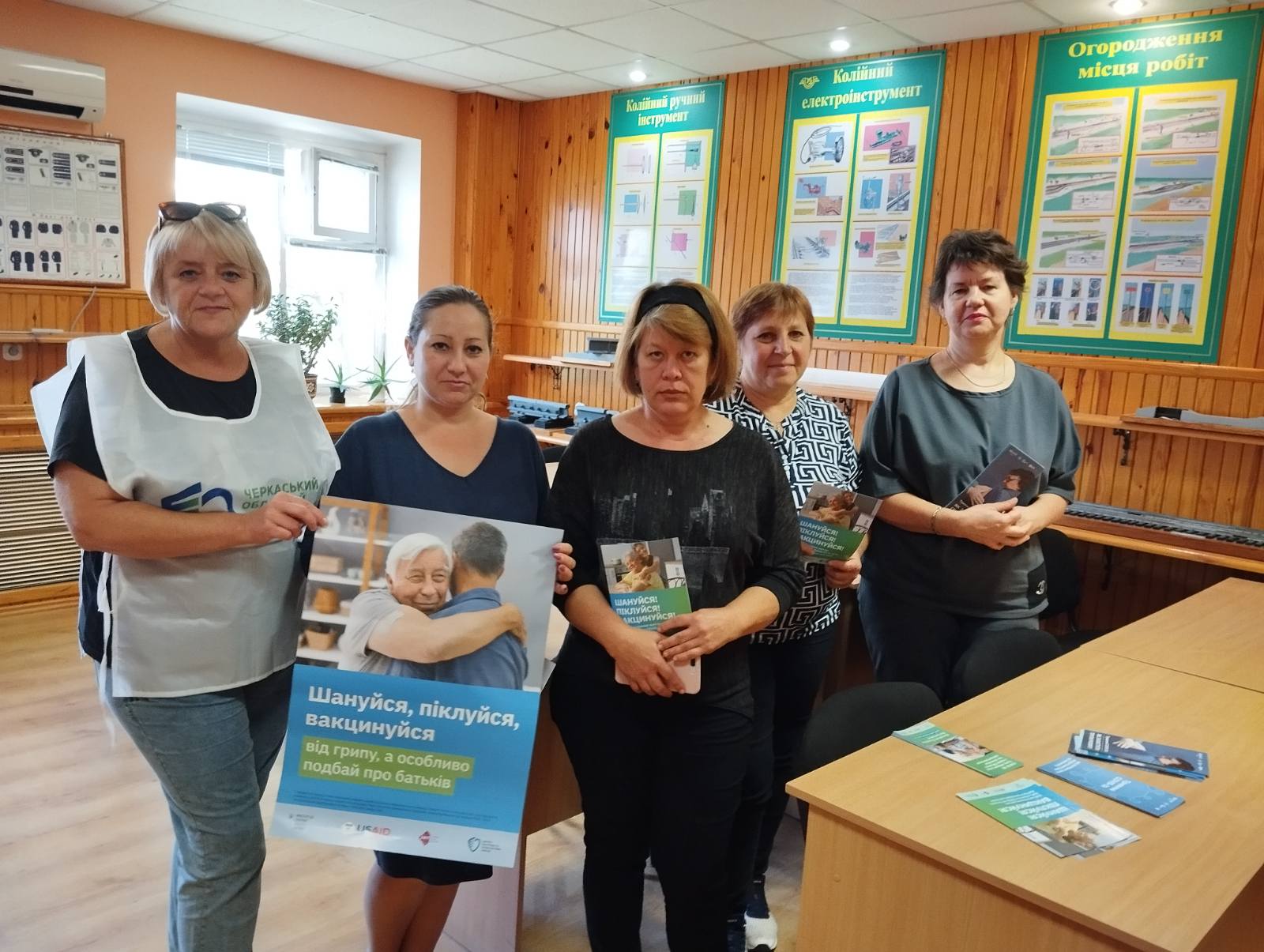 Помічниці лікаря-епідеміолога Смілянського відділення Черкаського міськрайонного відділу обласного центру контролю та профілактики хвороб Олена Сторчак та Ірина Мартиненко провели зустріч із працівниками підприємств залізничного транспорту: