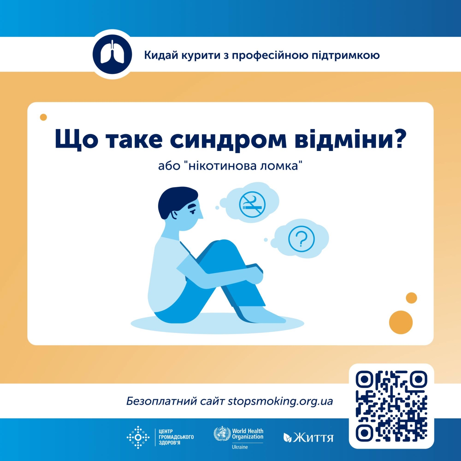 Під час куріння в організм потрапляє нікотин, речовина, яка викликає залежність. Якщо курець із нікотиновою залежністю кидає курити, і його організм більше не отримує звичну дозу нікотину, виникає синдром відміни – «нікотинова ломка». Цей стан характеризує непереборне бажання закурити, подолати яке може кожен.