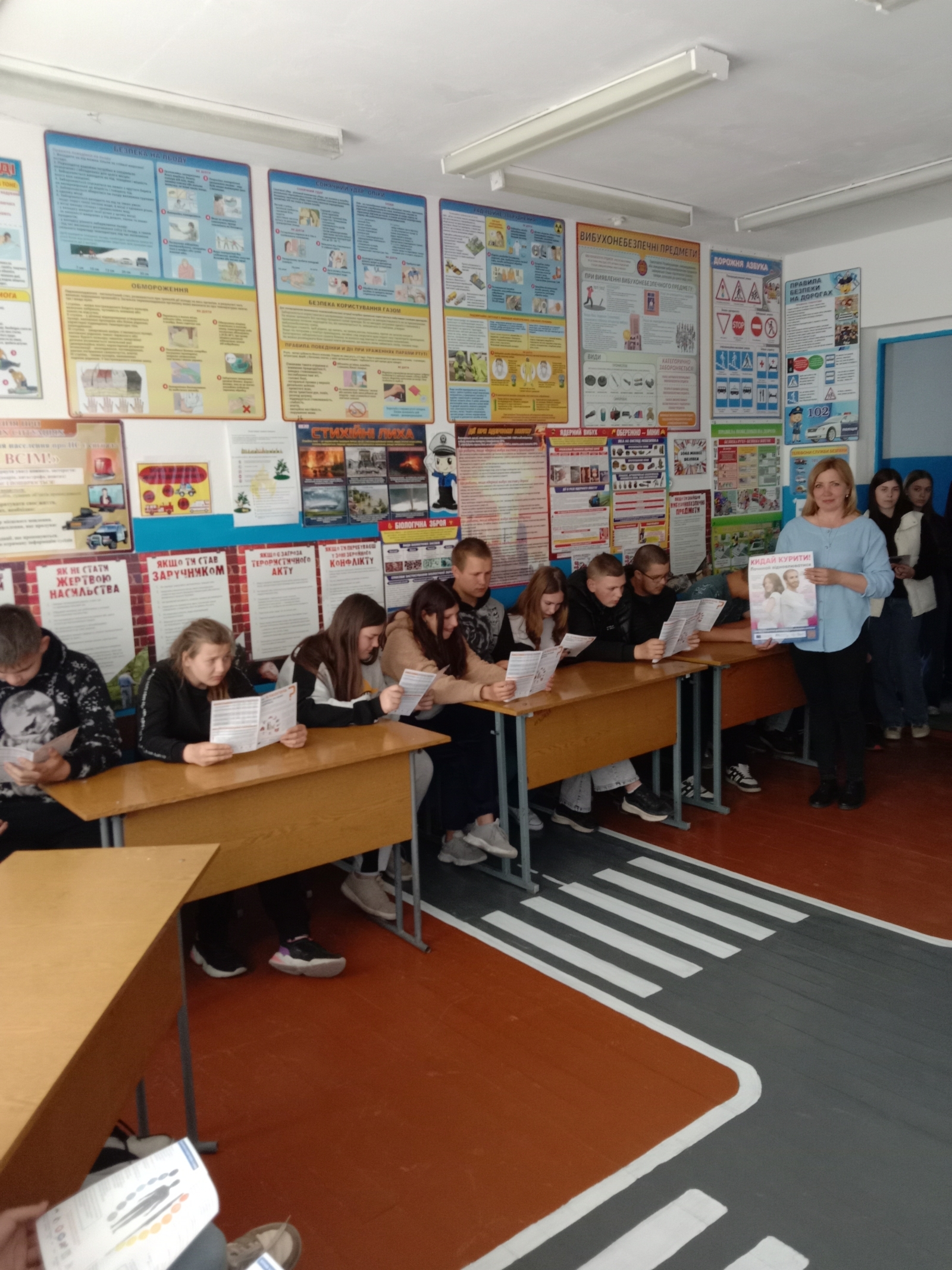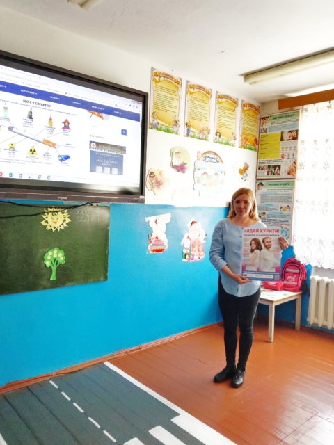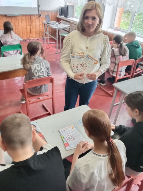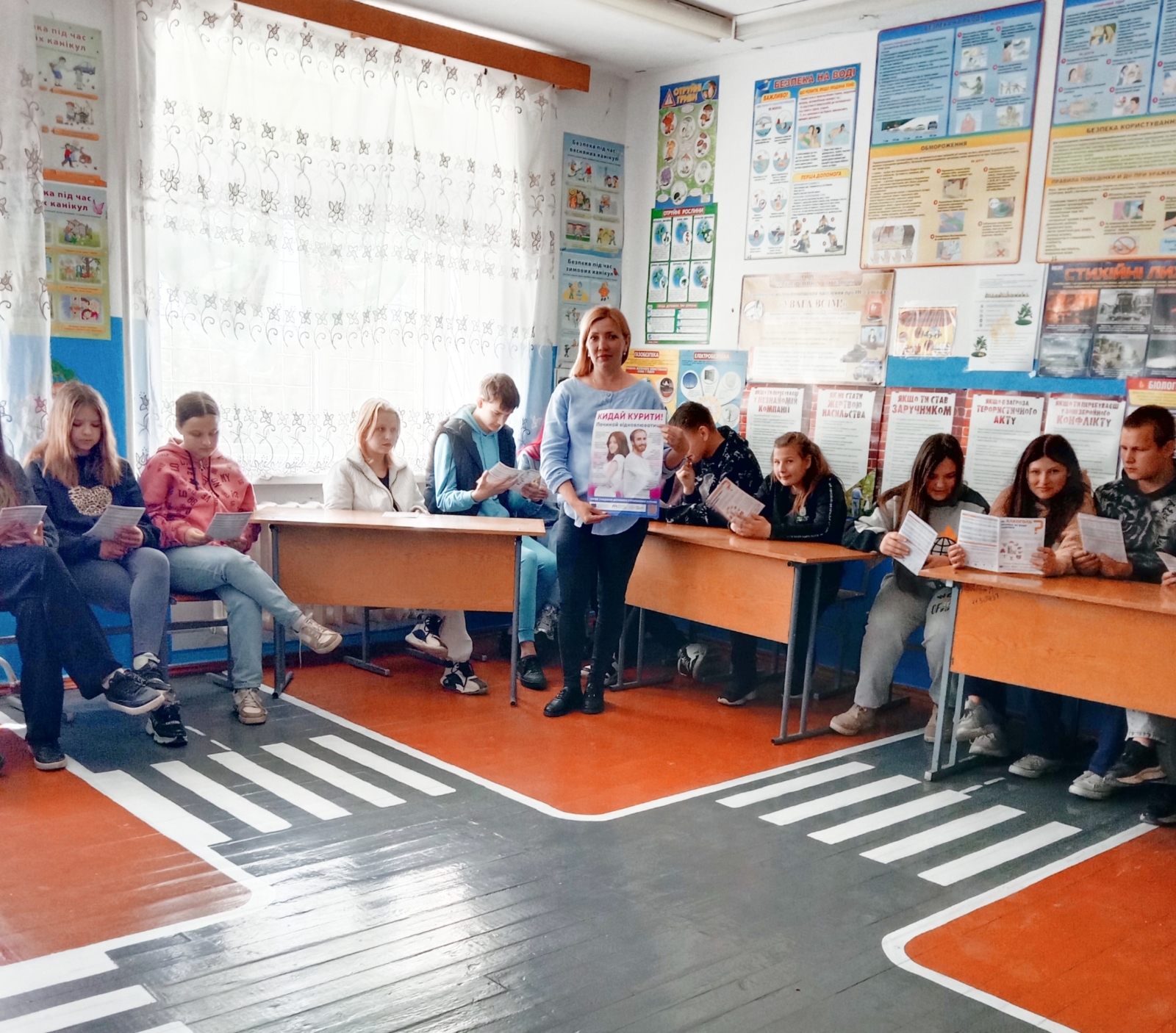 Із учнями 7-10 класів фахівчиня провела захід, спрямований на формування у підлітків прихильності до здорового харчування, а також – відмову від шкідливих звичок: куріння та алкоголю.