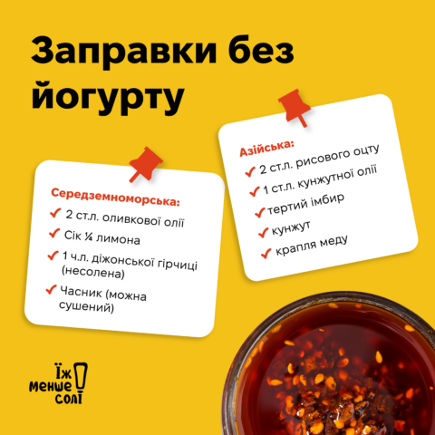Разом з нутріциологинею, консультантки зі здорового харчування Дар’єю Трохимович підготували ідеї для заміни солі і звичних «солоних» заправок.