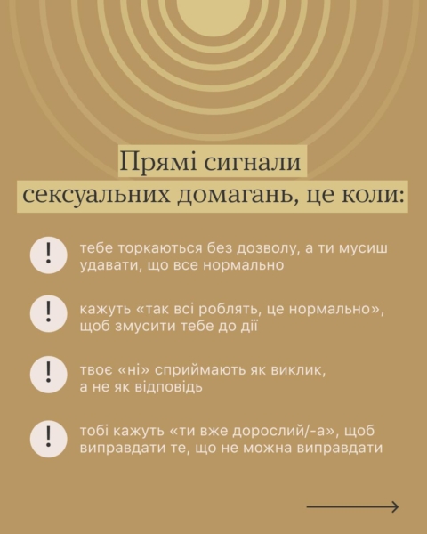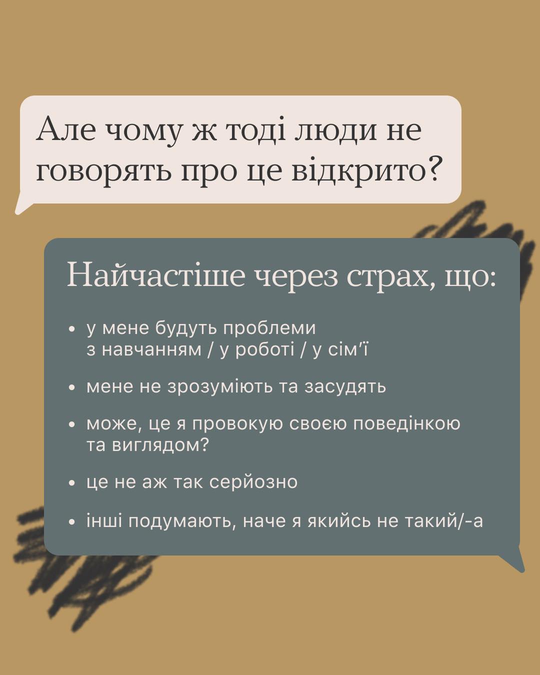 Бо сексуальні домагання — це не про флірт і компліменти. Це коли «просто жарт» може залишити слід на все життя. А ще це страх відмовити, бо можуть «вигнати» з універу, звільнити, зіпсувати репутацію, зганьбити.