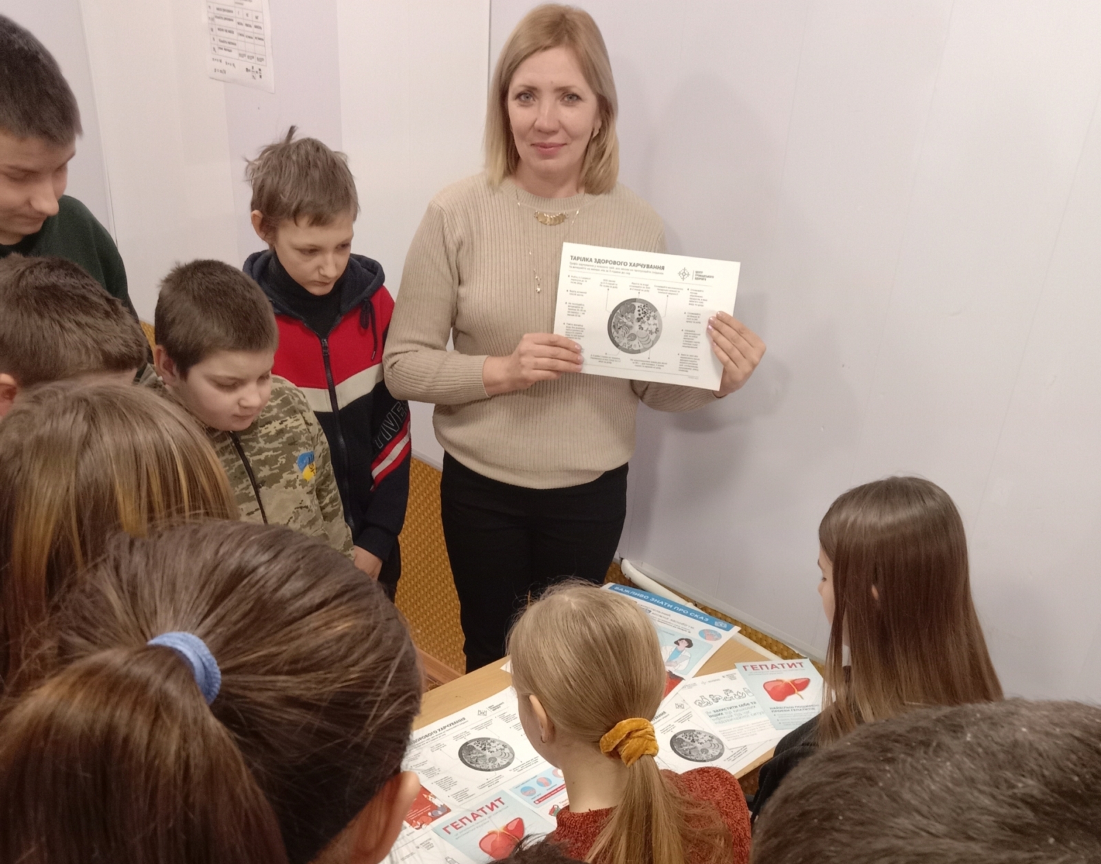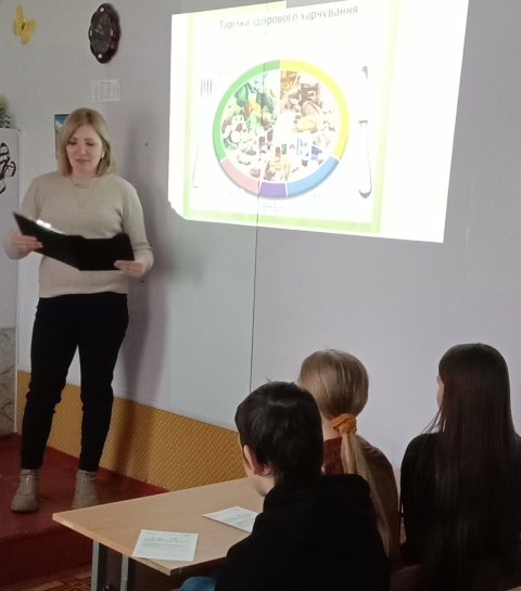Під час зустрічі говорили про наслідки неправильного харчування у підлітковому віці та основи збалансованого раціону. Учні дізналися цікаві історичні факти про харчові продукти, отримали наочні матеріали «Тарілка здорового харчування» та корисні пам’ятки про профілактику інфекційних хвороб, таких як кишкові інфекції й гепатит.