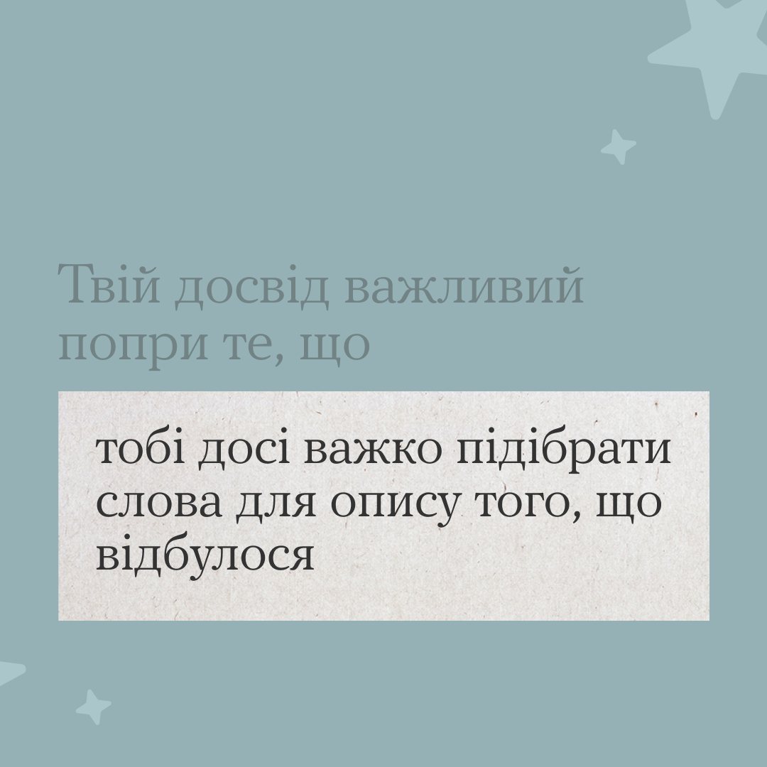 Навіть коли біль зʼявляється через роки — це все ще твій досвід. Важливий і вартий уваги. Незалежно від того, чи сприймають це інші.