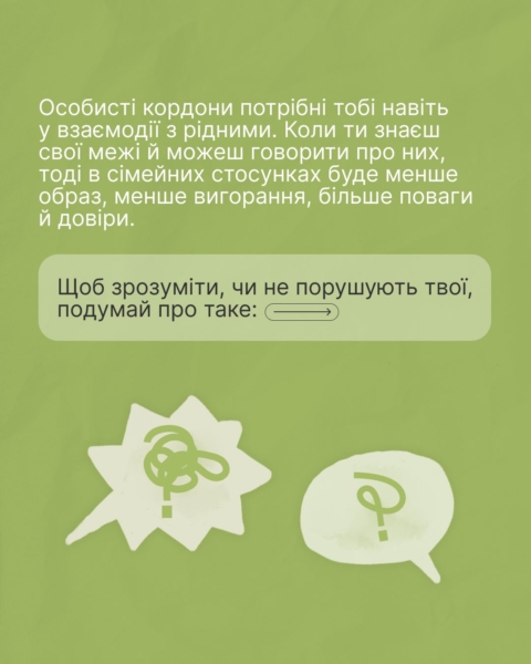 Сім’я може стати найкращою підтримкою і джерелом любові, які нам так потрібні. Але коли ми не відчуваємо свої кордони, спілкування з родиною може відбирати енергію, сили, викликати у нас відчуття провини та мати вплив на ментальне здоров’я.