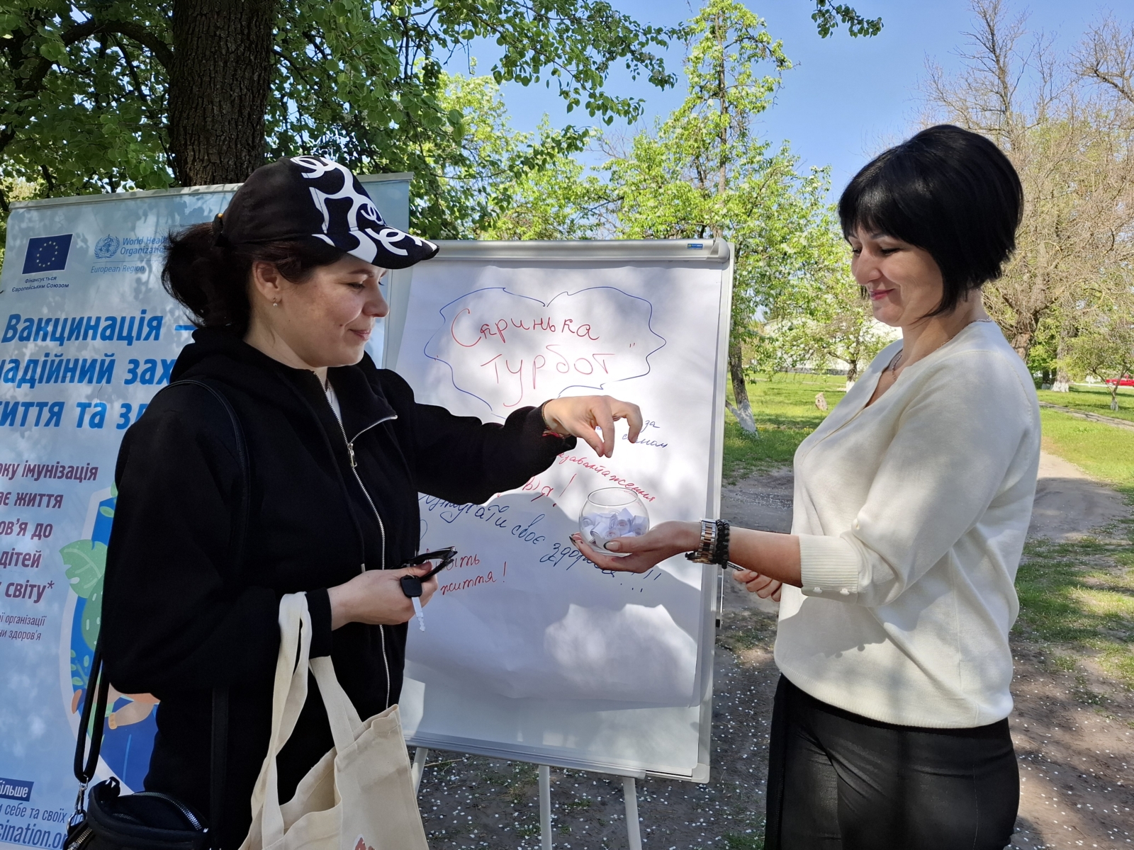 У ході профілактично-вакцинальної акції фахівці Черкаського обласного ЦКПХ комунікували з учасниками про важливість вакцинації дітей та дорослих, заходи профілактики неінфекційних захворювань та переваги здорового способу життя.