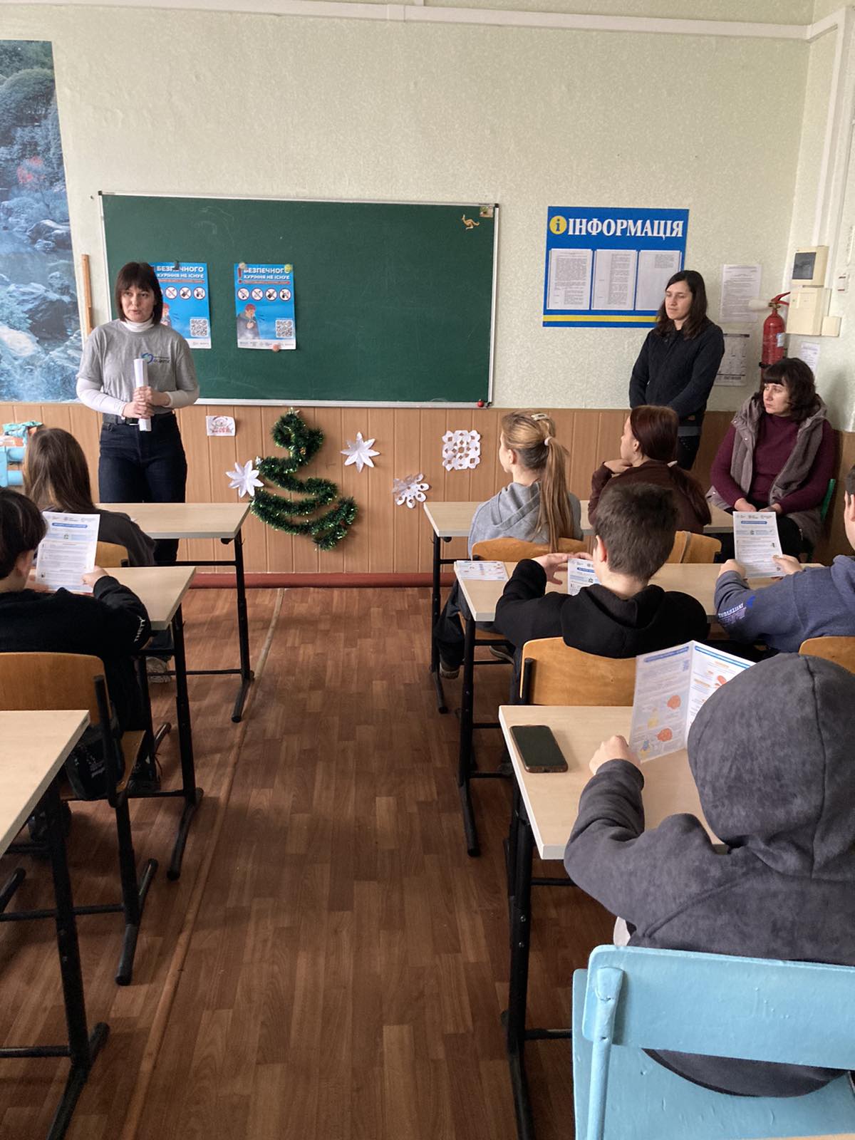 Під час заняття учні працювали з інформаційними буклетами, активно ставили запитання, ділилися власними думками й життєвими прикладами, що сприяло відкритому та довірливому обговоренню проблеми.