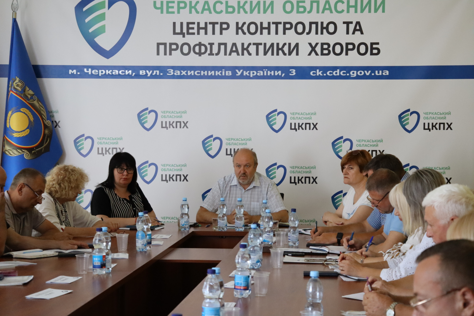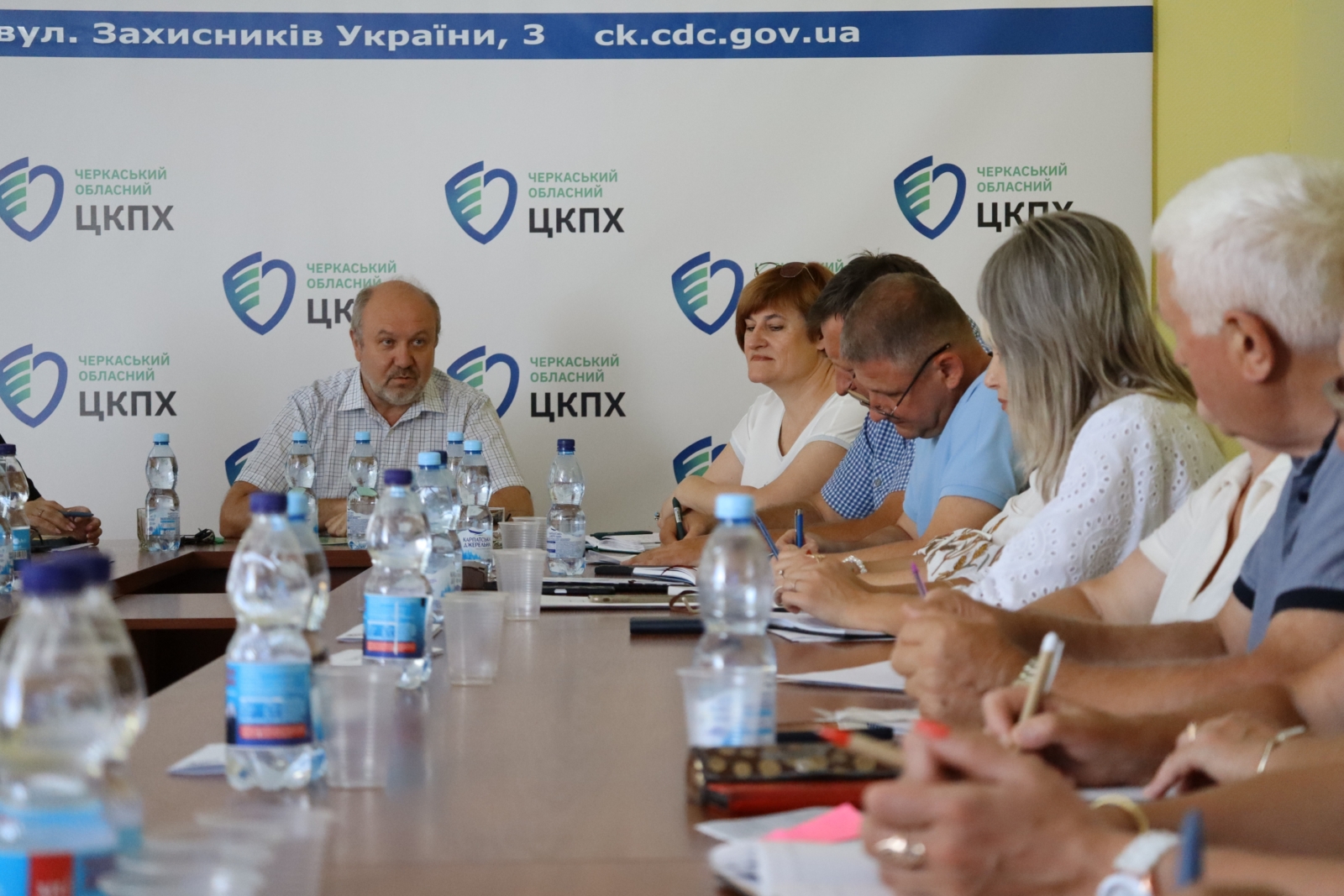 24 липня в Черкаському обласному центрі контролю та профілактики хвороб під головуванням генерального директора – головного державного санітарного лікаря області Володимира Папача відбулась нарада керівників відокремлених структурних підрозділів, на якій були обговорені актуальні питання діяльності Центру за підсумками першого півріччя 2025 року, розбудови системи громадського здоров’я на Черкащині тощо.