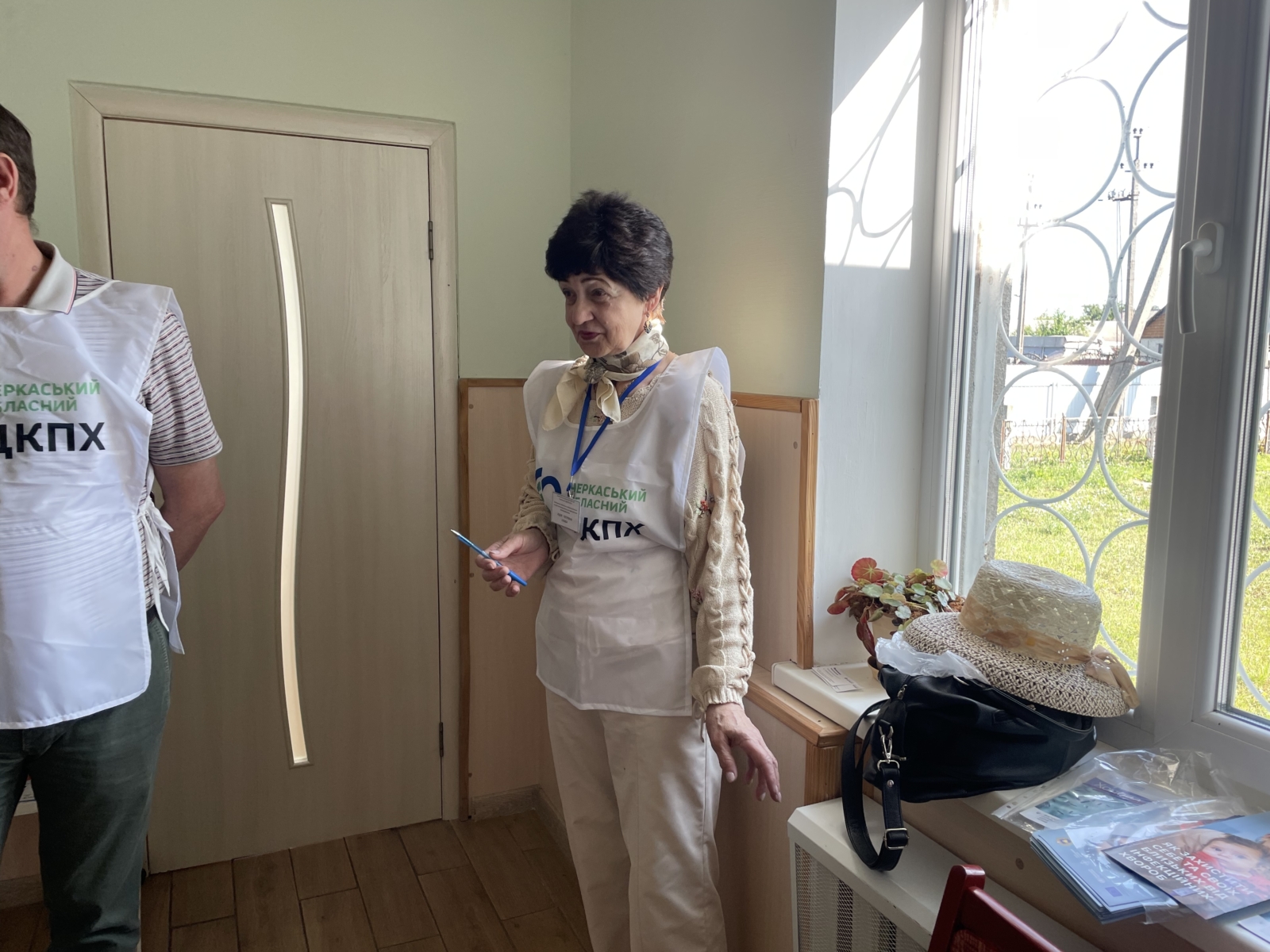 До лікаря з гігієни праці відділу епіднагляду та профілактики неінфекційних захворювань Центру Миколи Черепанова та помічниці лікаря-епідеміолога відділу імунопрофілактики Людмили Гаркавої долучились завідувачка відділення епіднагляду за інфекційними захворюваннями Золотоніського районного відділу Лідія Скиба та медичні працівниці Амбулаторії №9 с. Пальміра Золотоніського міського ЦПМСД.