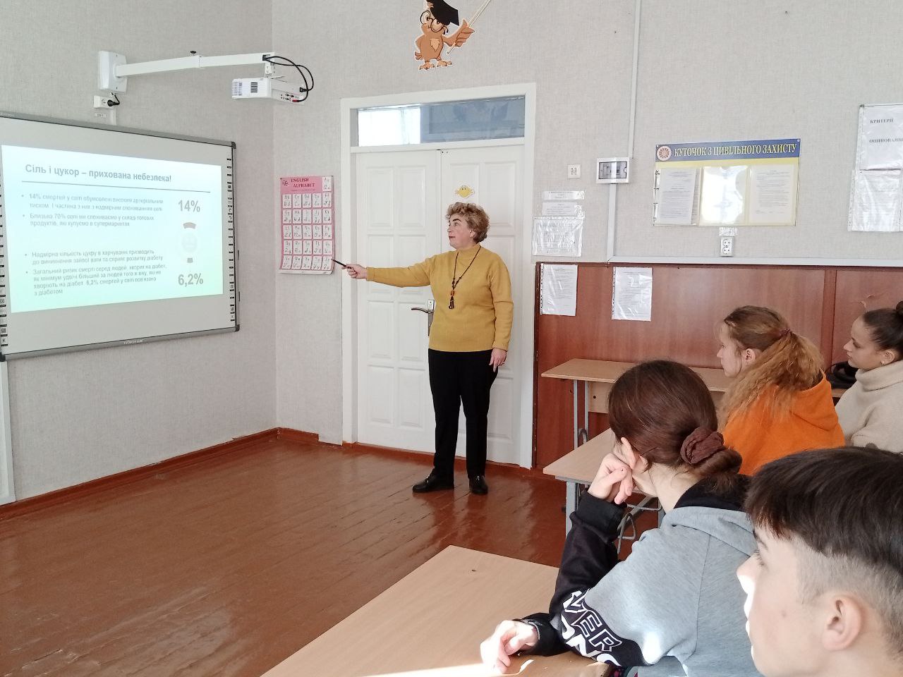 Із метою формування культури здорового харчування у межах проєкту серед учнів 10-11 класів проведені презентації на теми «Основи здорового харчування» та «Цукор, сіль та трансжири – небезпека, про яку ми можемо не здогадуватися».