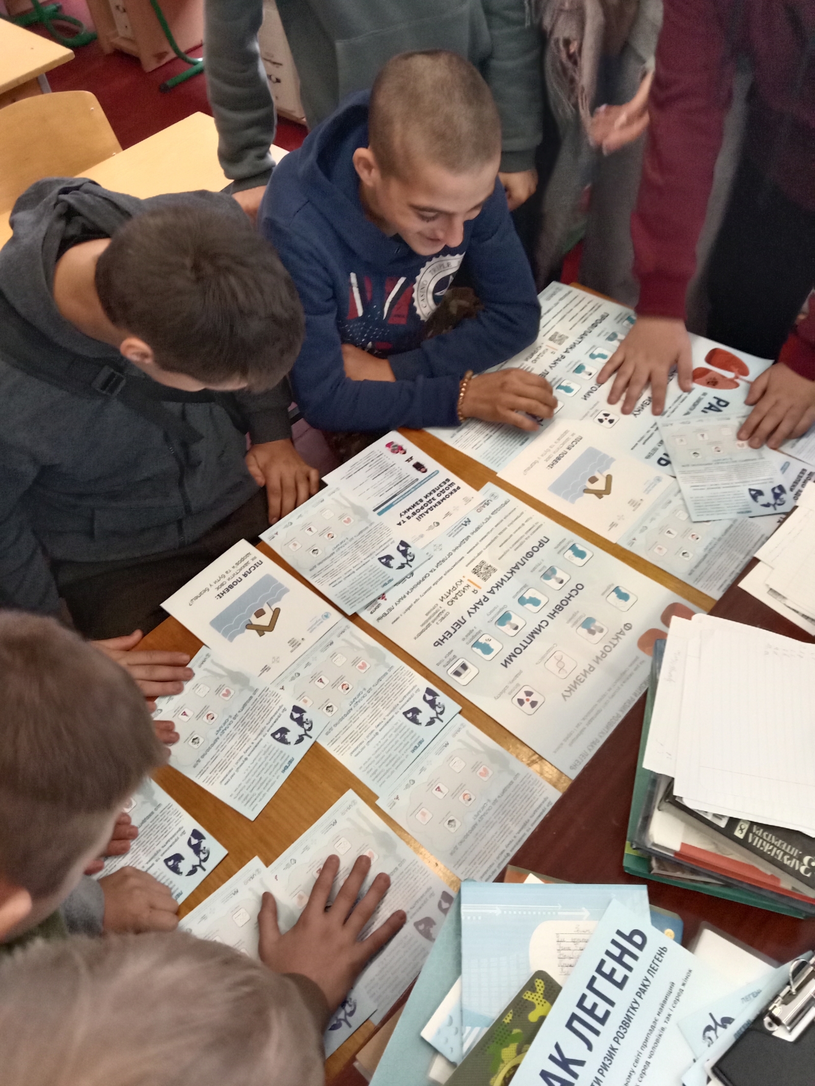 Учні отримали наочні матеріали на теми «Як знизити ризик розвитку раку легень» і «Тарілка здорового харчування», які допоможуть краще зрозуміти, як забезпечувати свій організм необхідними поживними речовинами.