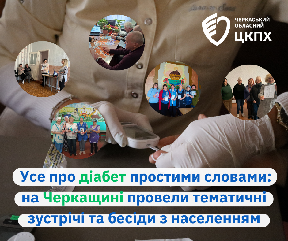 Усі структурні підрозділи Черкаського обласного ЦКПХ долучилися до ініціативи Центру та провели широку просвітницьку кампанію, спрямовану на підвищення обізнаності населення щодо профілактики цукрового діабету, важливості ранньої діагностики та здорового способу життя.