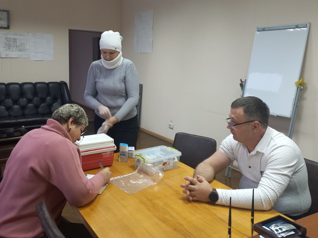 Помічник лікаря-епідеміолога Ігор Грабчак, фельдшер санітарний Валерій Ковтун та бактеріологиня Людмила Осіпчук Уманського міськрайонного відділу взяли участь у виїзній вакцинальній акції до Уманського ПрАТ «Технолог», де щепили 141 співробітника.