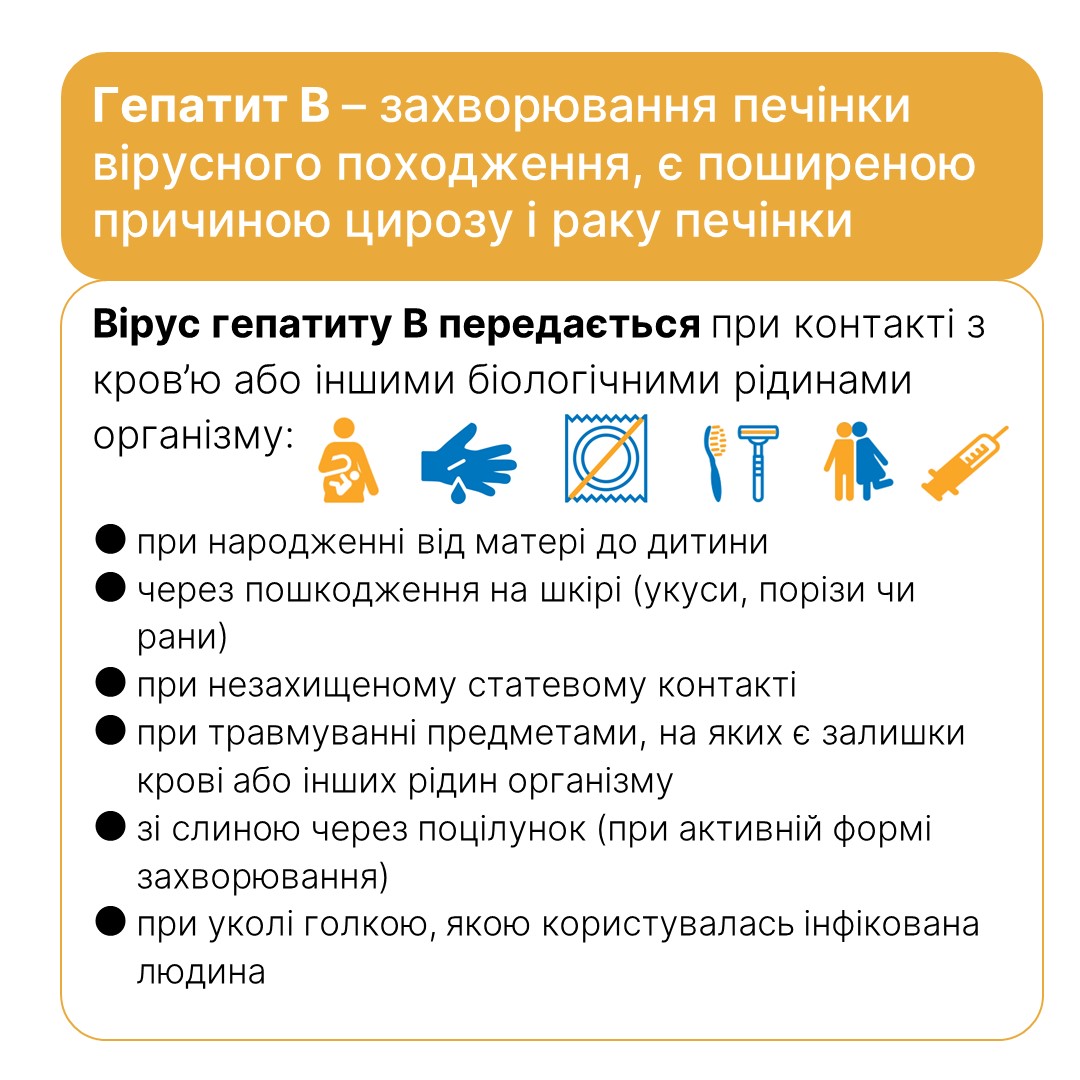 Розрізняють багато типів вірусів: А, В, С, D і Е. Усі вони спричиняють захворювання печінки, проте найбільшу небезпеку для громадської охорони здоров’я мають гепатити із гемоконтактним і вертикальним механізмами передачі – В, C, D. Зараження цими гепатитами може статися під час переливання крові, при проведенні косметичних процедур, медичних маніпуляціях, при передачі вірусу від матері до дитини під час пологів, при користуванні спільними приладами для гоління, зубними щітками тощо та інших індивідуальних засобів гігієни, що можуть містити сліди крові, статевим шляхом та під час вживання наркотиків ін’єкційно та інтраназально.