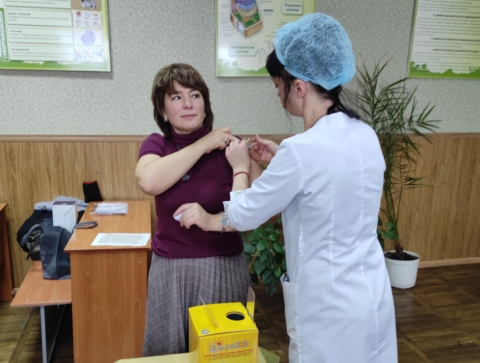 Бактеріологиня лабораторії Людмила Осіпчук та помічниця лікаря-епідеміолога Вікторія Моргонюк долучились до імунізації від дифтерії та правця 35 викладачів коледжу та 20 студентів.