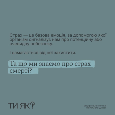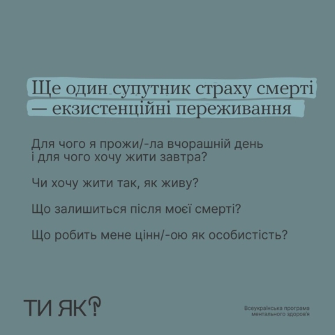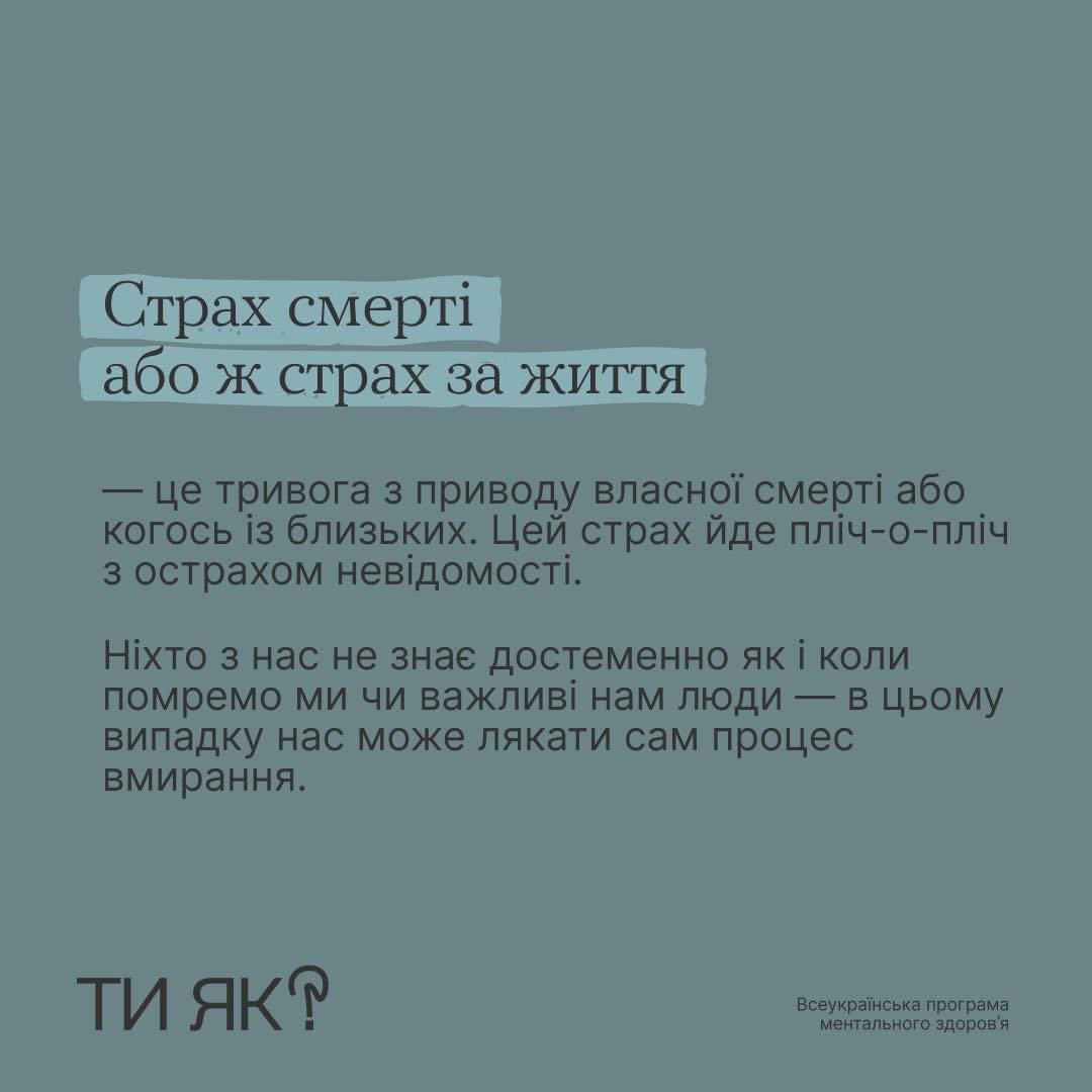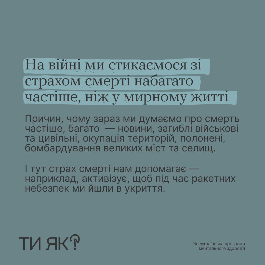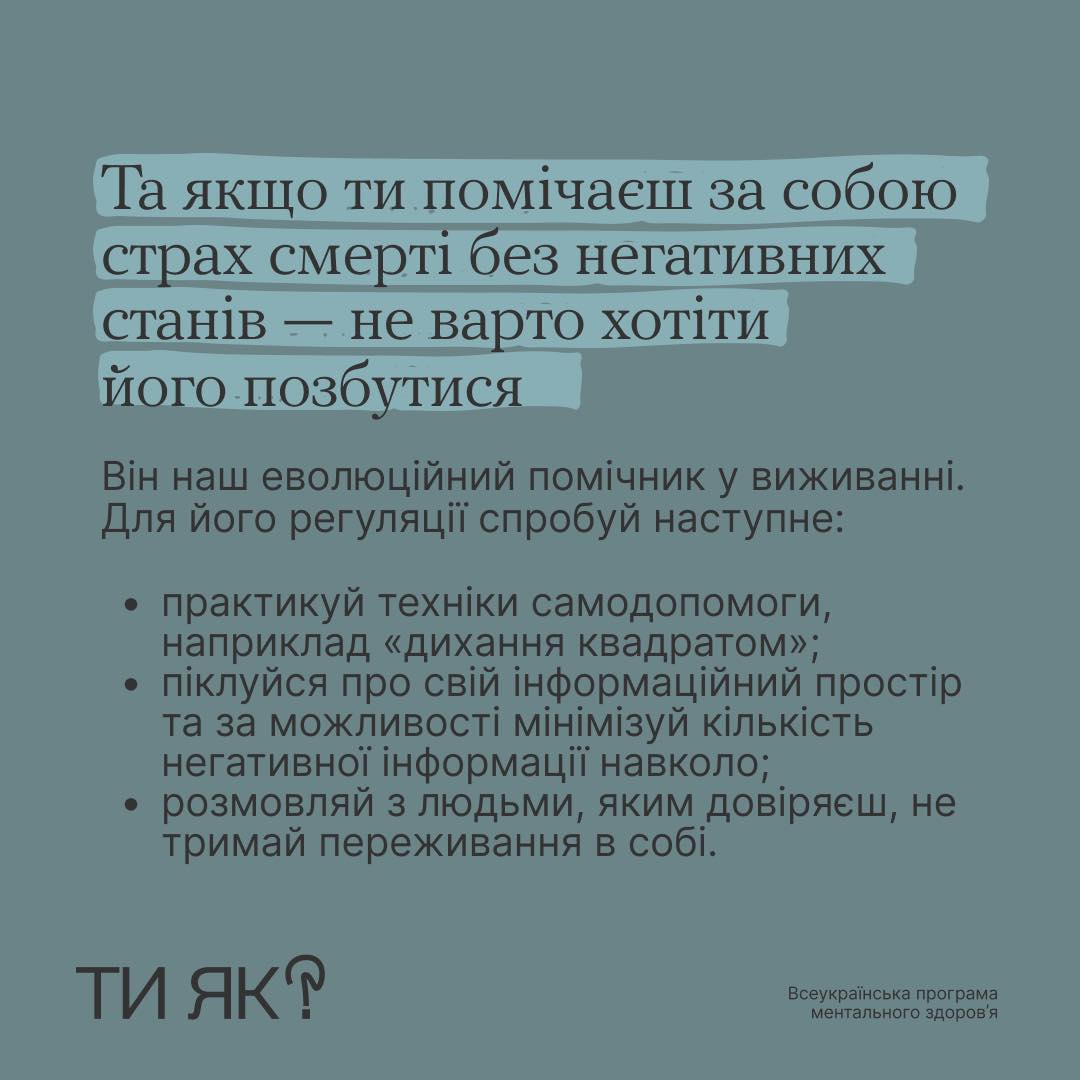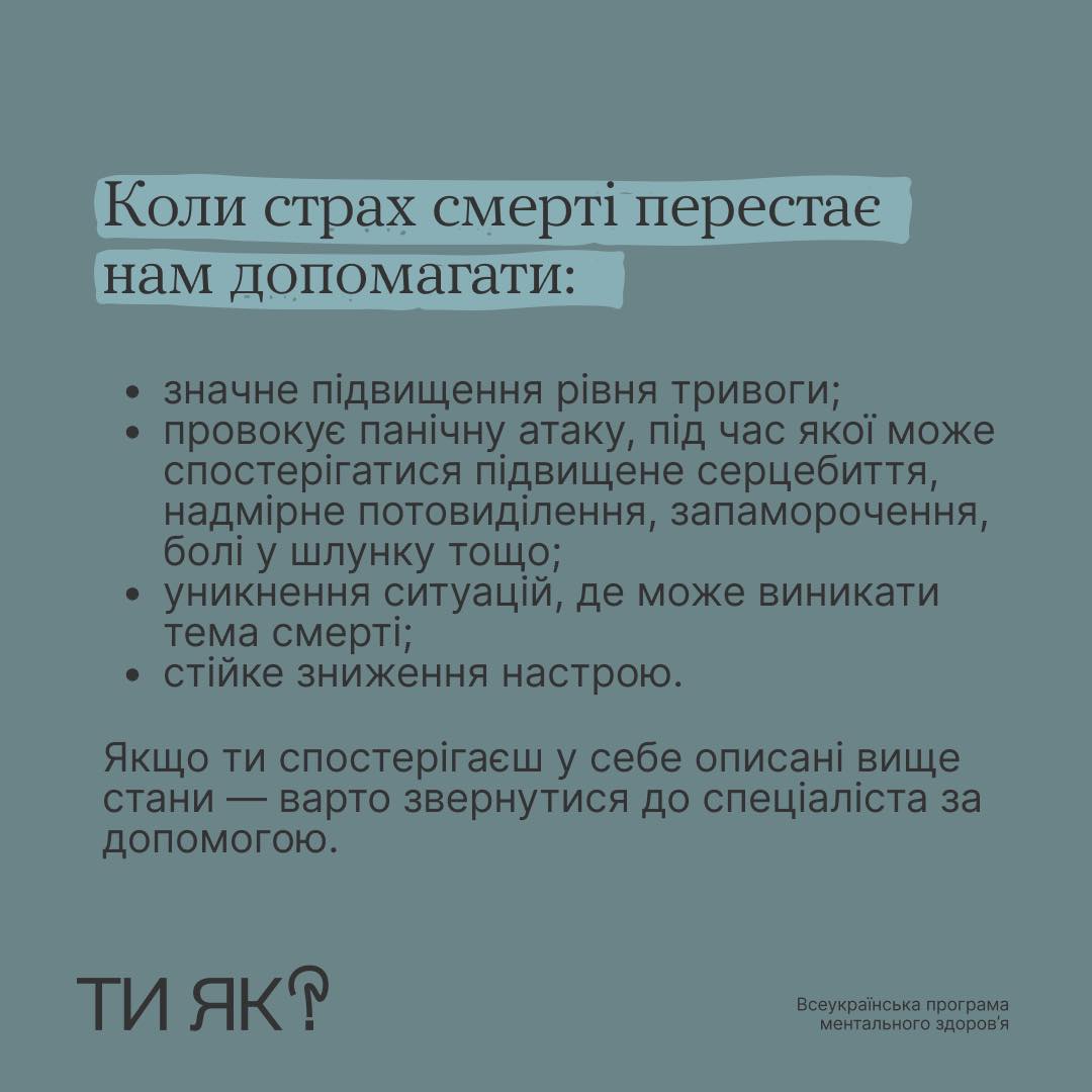 Боятися смерті — нормально. Це наш еволюційний механізм до виживання. Та в яких випадках він може погіршити якість нашого життя? І як допомогти собі?