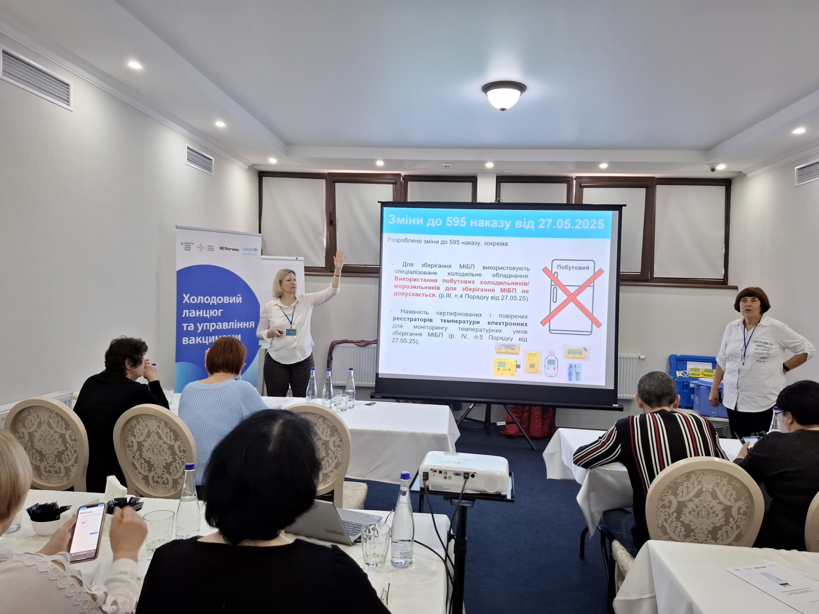 На сьогодні заклади охорони здоров’я в Україні та області оснащені обладнанням, що відповідає світовим стандартам зберігання імунобіологічних препаратів. Робота з новітнім обладнанням вимагає певних знань та практичних навичок. Тож у програму тренінгу включені питання змін у нормативно-правових актах з імунізації, які відбулися в Україні, вимоги до розміщення холодильного обладнання та надбання практичних навичок роботи з обладнанням, температурним моніторингом, розміщенням вакцин у холодильниках.