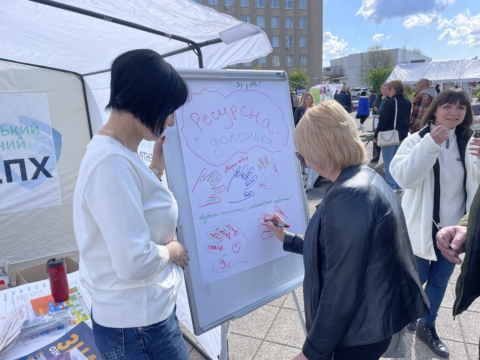 За потреби кожен міг поспілкуватись із психологом та лишити своє повідомлення на фліп-чарті «Ресурсна долонька». А малеча в ігровій формі пройшла емоційне налаштування «Екран настрою».