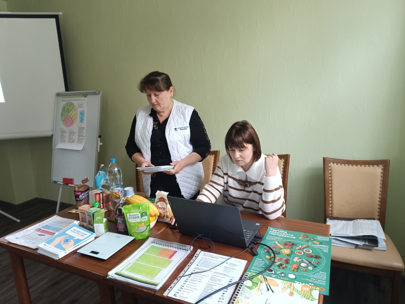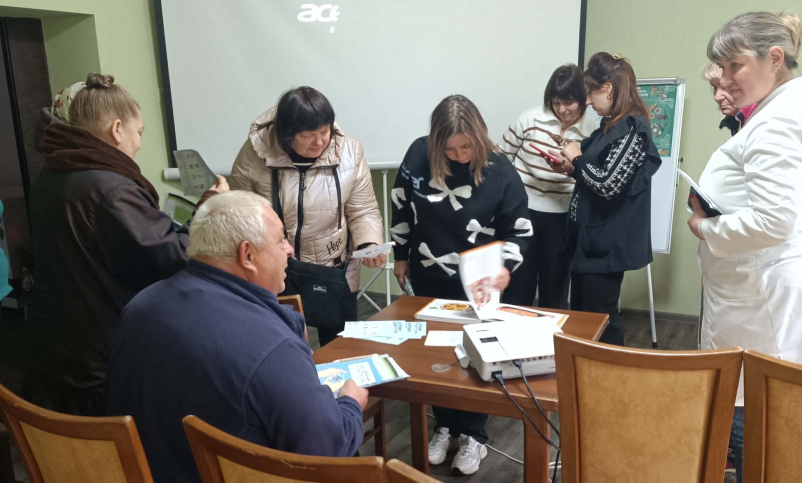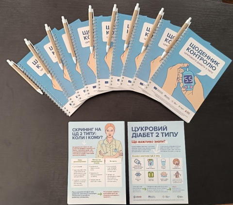 Присутнім роздали щоденники контролю цукрового діабету 2 типу з поясненнями, як вести записи про рівень глюкози, артеріальний тиск, фізичну активність і харчування.