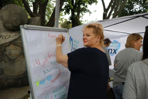 Із психологинею Центру вчилися долати тривогу й піклуватися про себе: кожен міг витягнути й розшифрувати послання з «Кошику сенсів», лишити свою мрію на фліпчарті під назвою «Чарівна скринька думок і малюнків». Після консультації враженнями від спілкування ділиться пані Олена Різник: