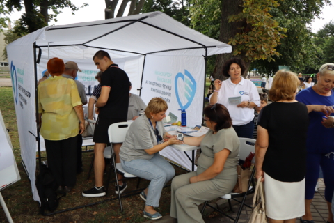 У наметі Центру працювали фахівці відділів епіднагляду та профілактики неінфекційних захворювань, епіднагляду та профілактики інфекційних захворювань, імунопрофілактики, психолог та заступниця генерального директора Наталія Видра.