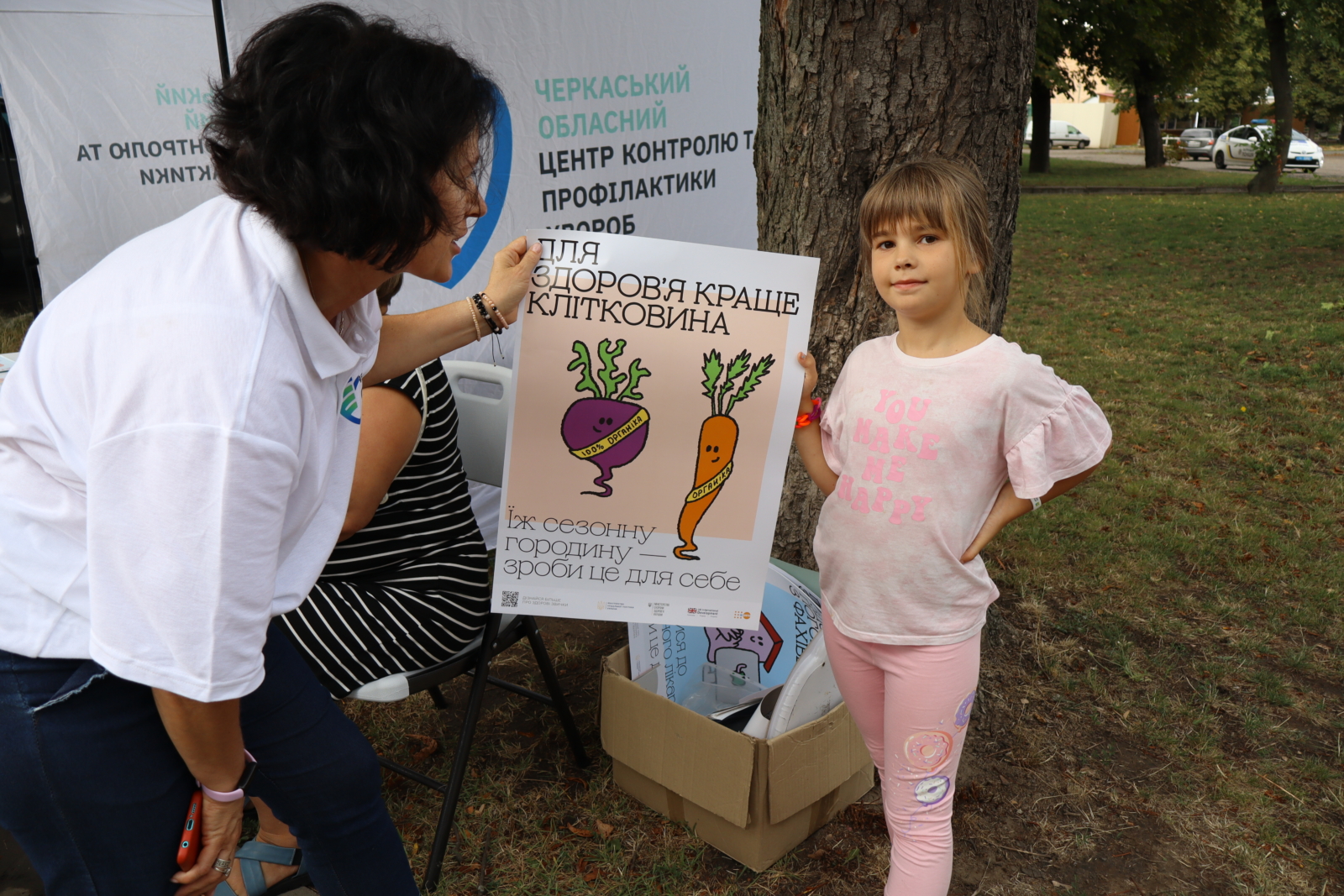 Відвідувачі мали нагоду взяти участь в різноманітних активностях для підтримки здоров’я. Свою локацію «Острівець здоров’я» представили й фахівці Черкаського обласного центру контролю та профілактики хвороб.